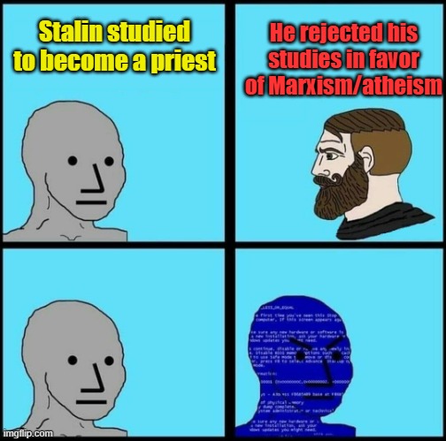 Stalin studied to be a priest, he rejected his studies in favor of Marxism and atheism