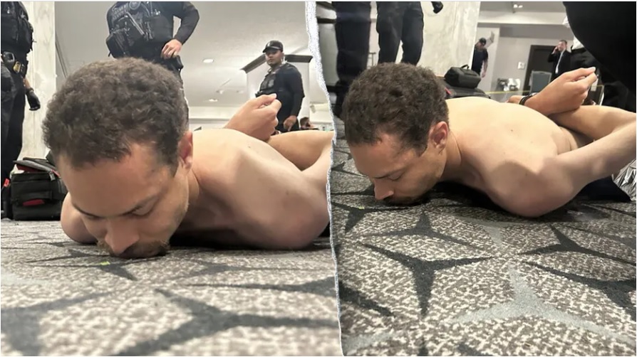 Cole Allen lays on his belly with his arms behind his back after the shooting. (Donald Trump/Truth Social)