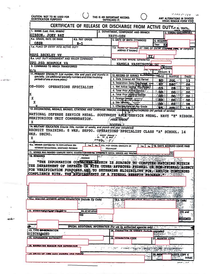 Joey Gibson FOIA AA DD214